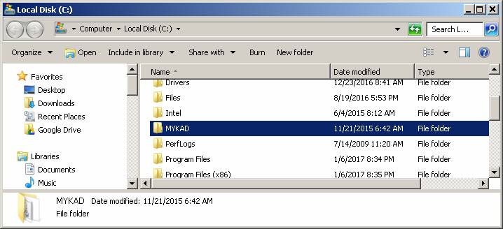 Step 4: Locate the MYKAD folder in your C drive. Doubleclick to enter the folder.